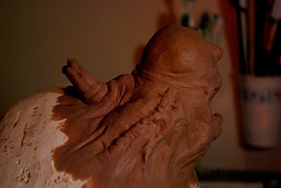 This was an attempt to be scary, but something about his sinister smile makes it sweet. Not to mention his beating stick looks more like it's being offered as a giant dead flower. Oh subtle nuances of drawing expressions, how you elude me...